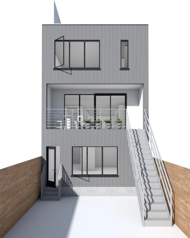 Facing a structure in major disrepair, MCV prioritized a sustainable adaptive reuse approach that salvaged as much of the original building as possible. Rather than a full demolition, we carefully stitched a new three-story extension onto the rear of the existing frame, dramatically increasing the site’s density and square footage while minimizing the project's environmental impact.