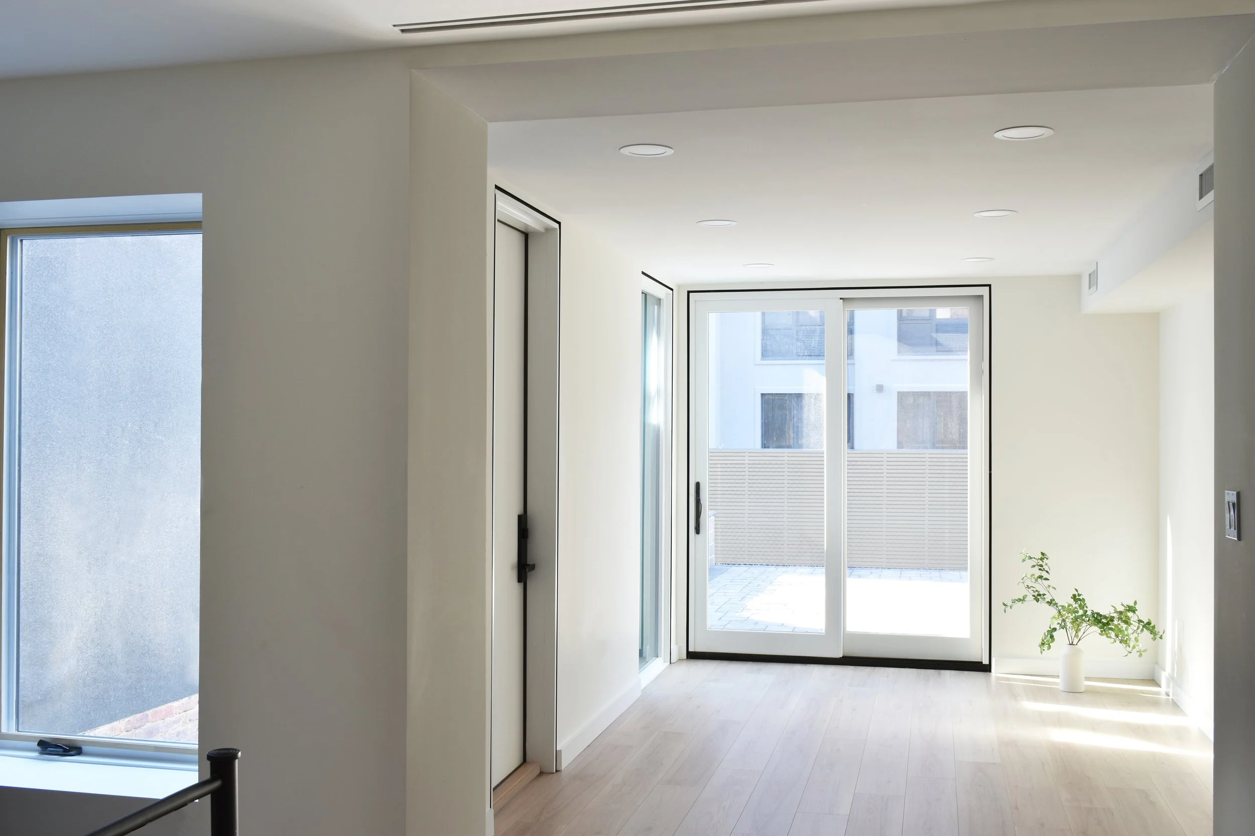 Working with a moderate budget, we sought opportunities to bring thoughtful design into the project. The rebuilt extension now serves as a home office, featuring large sliding doors that open to the new rear yard and multiple side windows that fill the space with natural light.